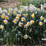 12. Bulbs may have been growing in the same spot for many years and need dividing. Daffodil bulbs normally divide every year or two. This can result in clumps of bulbs that are competing for food and space. Commonly bulbs in compacted clumps cease blooming. Dig the bulbs when the foliage has yellowed. Separate them into individual bulbs and replant them about 6″ apart and about 6″ deep. You may replant immediately after lifting, or you may dry the bulbs in the shade, store them in mesh bags, and replant the bulbs in the Fall. If you replant immediately – do not water them until the Fall.